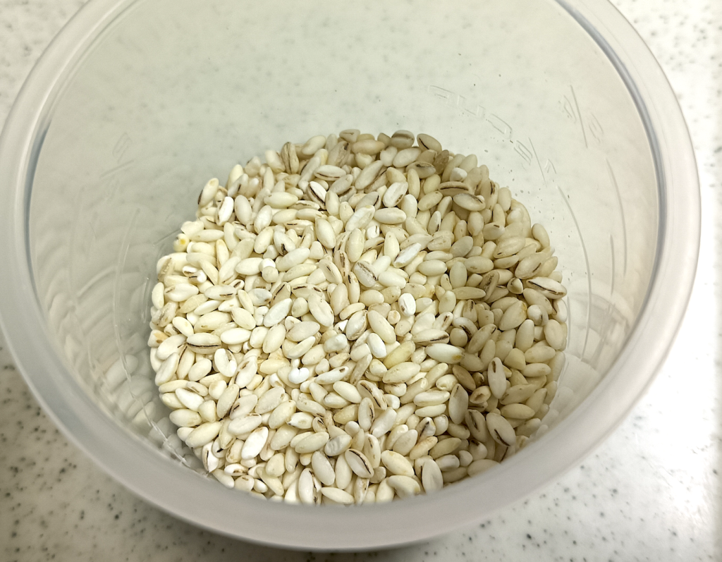 最初にスーパーで見かけた時、どうして米粒麦を買ったのかって、単純に他の穀物類と比べて安かったからです。